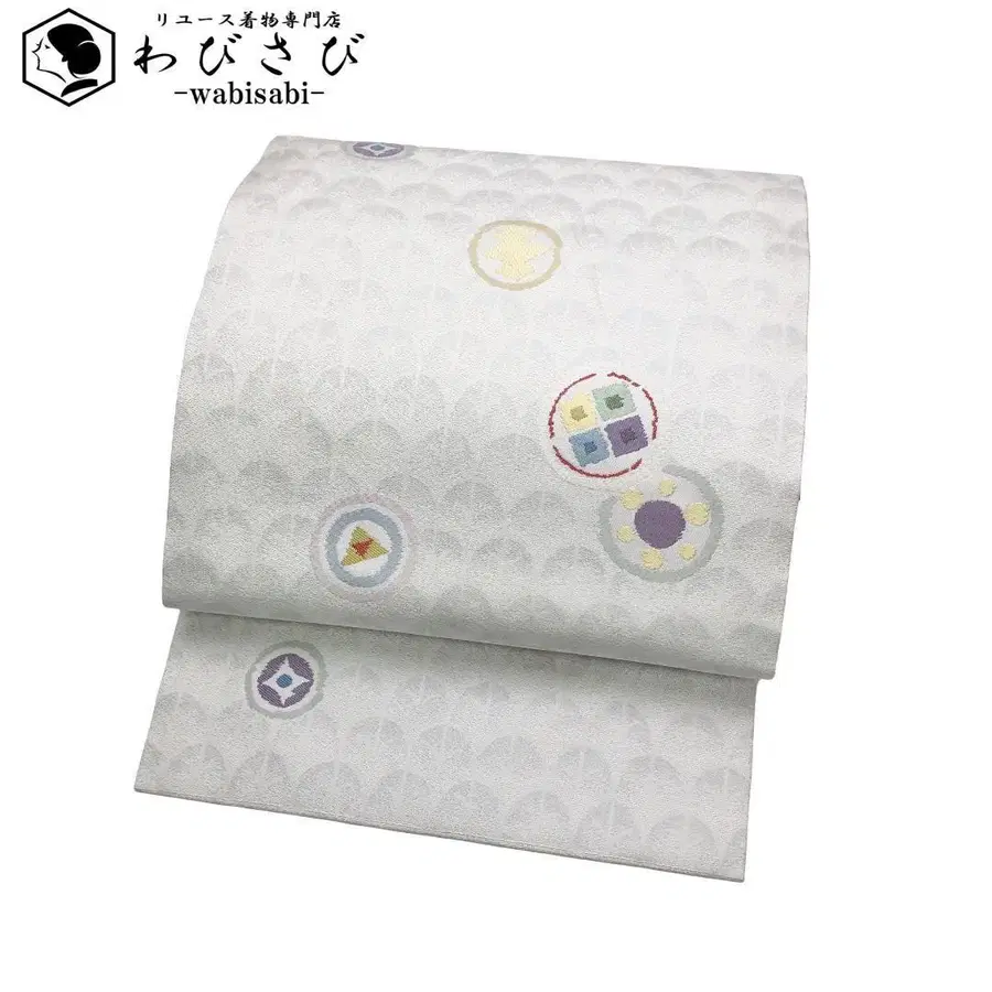 나고야 오비 원 안에 사각형 및 원 무늬 화이트 컬러 O-5560