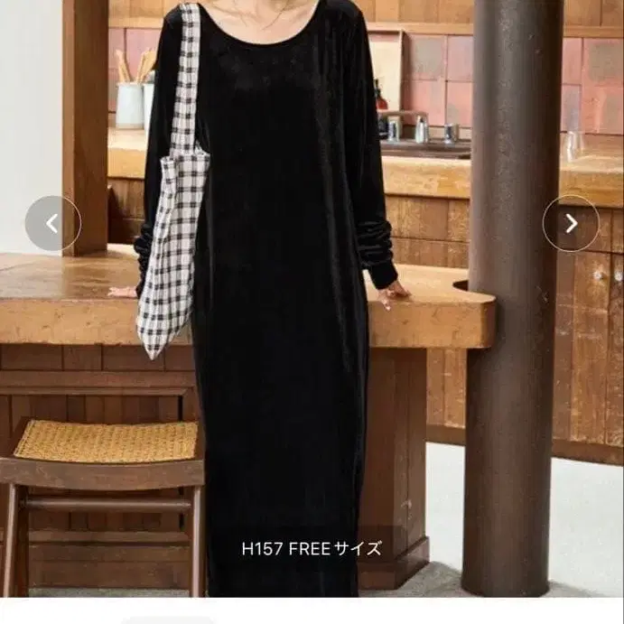 광택감 있는 벨로아 소재와 발레 넥이 여성스러움을 돋보이게 하는 롱 기장 원피스입니다.