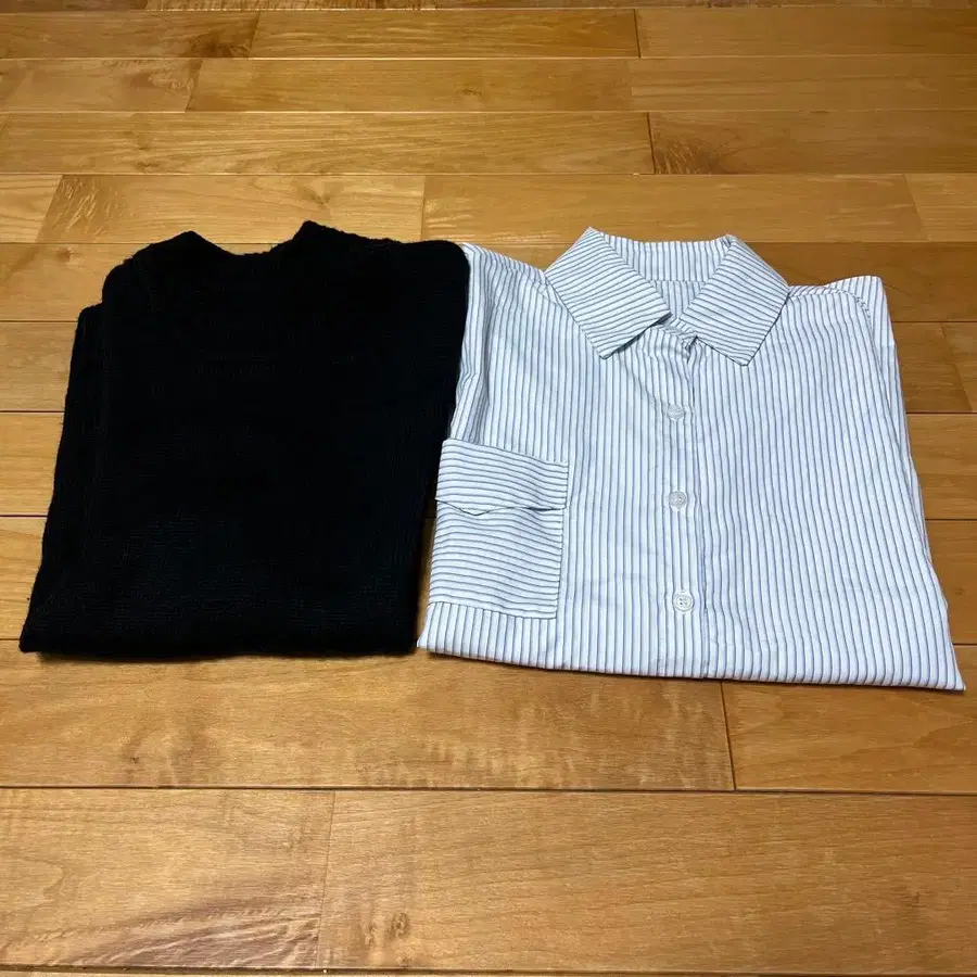 레이어드 스타일의 니트와 셔츠
