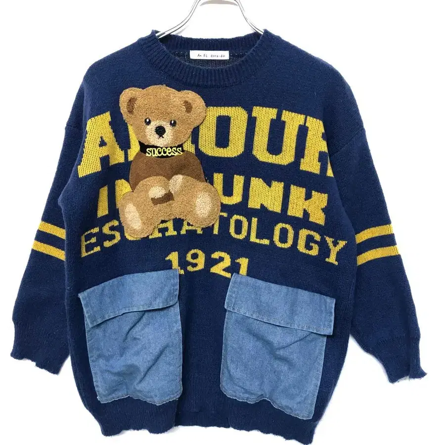 한국 스트릿 K-POP 귀여운 걸리시 구제 의류 곰돌이 자카드 니트