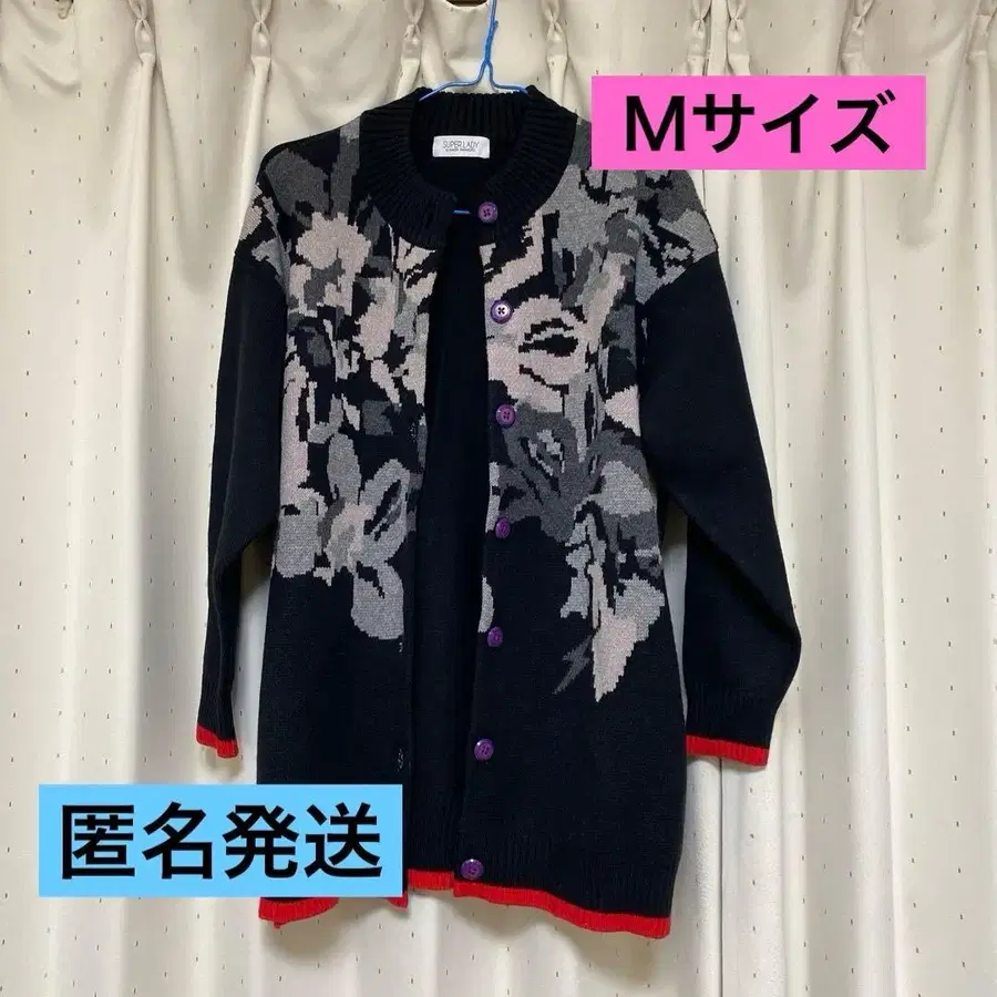 SUPER LADY 꽃무늬 가디건 긴팔 블랙 야마모토 간사이