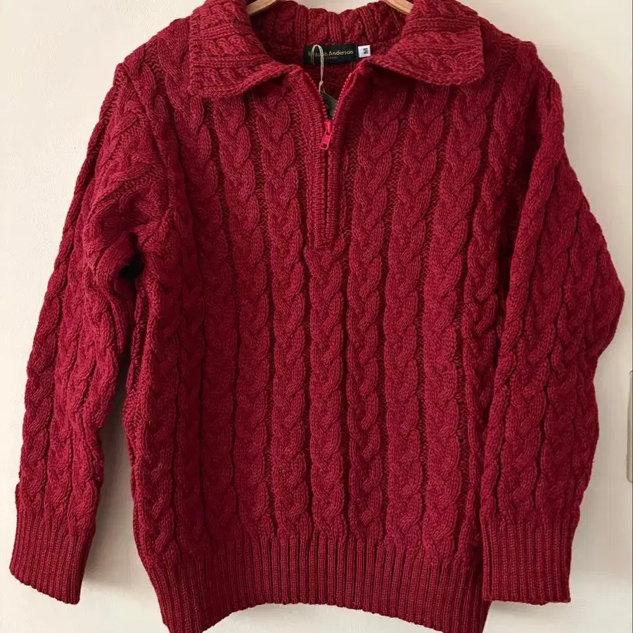영국제 버건디 케이블 짜임 하프 지퍼 스웨터
