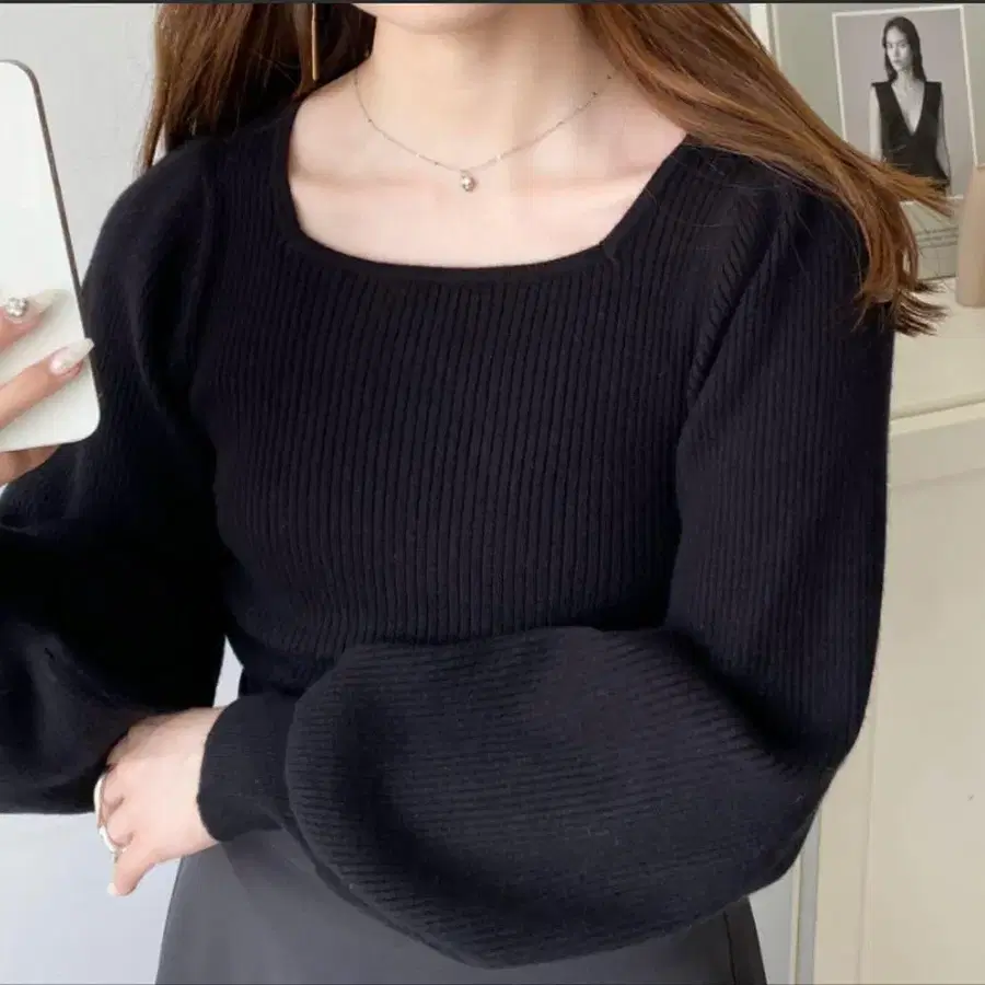 미착용 새상품 블랙 스퀘어넥 니트 M