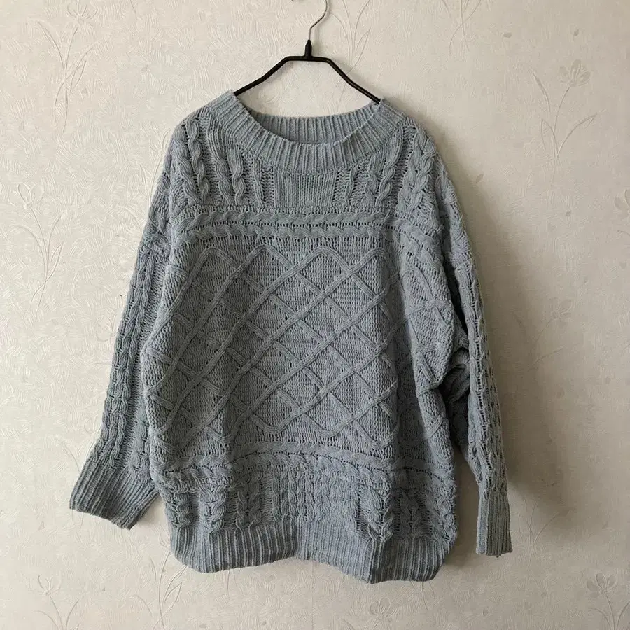 [미사용 새상품] 오버 사이즈 케이블 니트 스웨터 블루 르농큐르