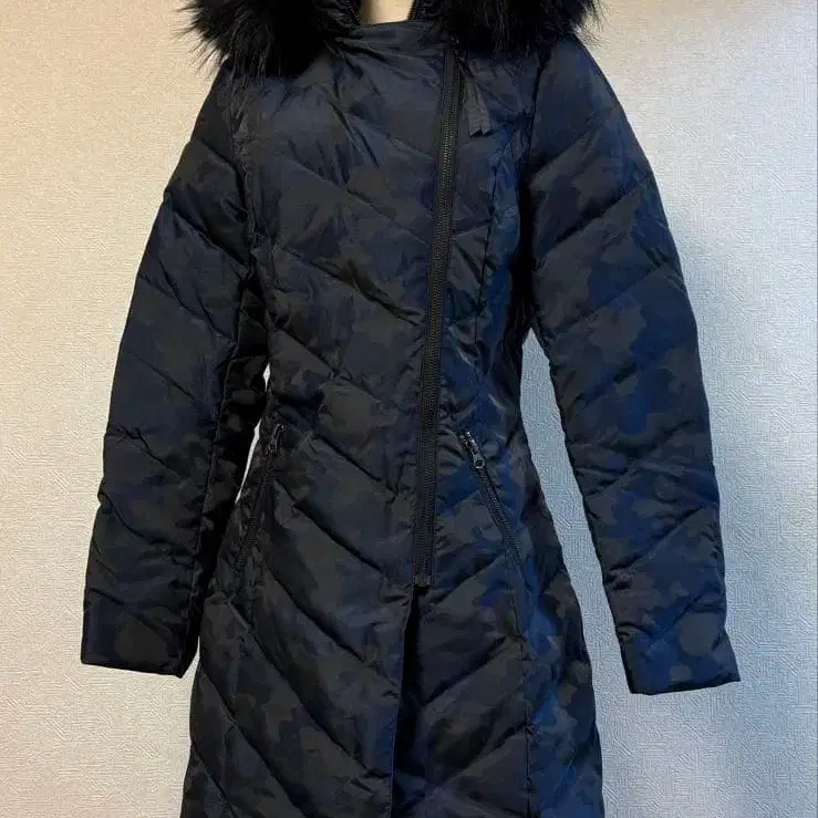 SPOOOM 퍼 후드 카모플라주 패턴 롱 다운 자켓
