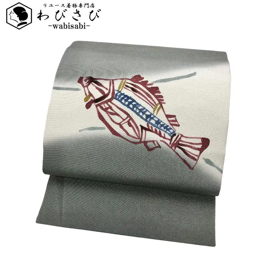 나고야 오비 히라메 패턴 넙치 생선 쥐색 크레이프 원단 O-5643