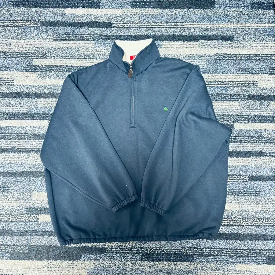 차분한 네이비 컬러에 가슴 부분의 원포인트 자수가 돋보이는 아이템입니다.