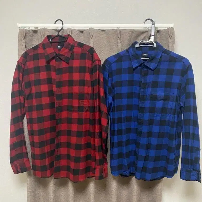 유니클로 UNIQLO 체크 무늬 긴팔 셔츠 2장 세트 L 사이즈