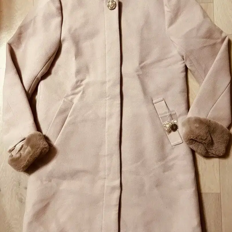 새상품 샘플 노카라 코트 핑크 베이지 M