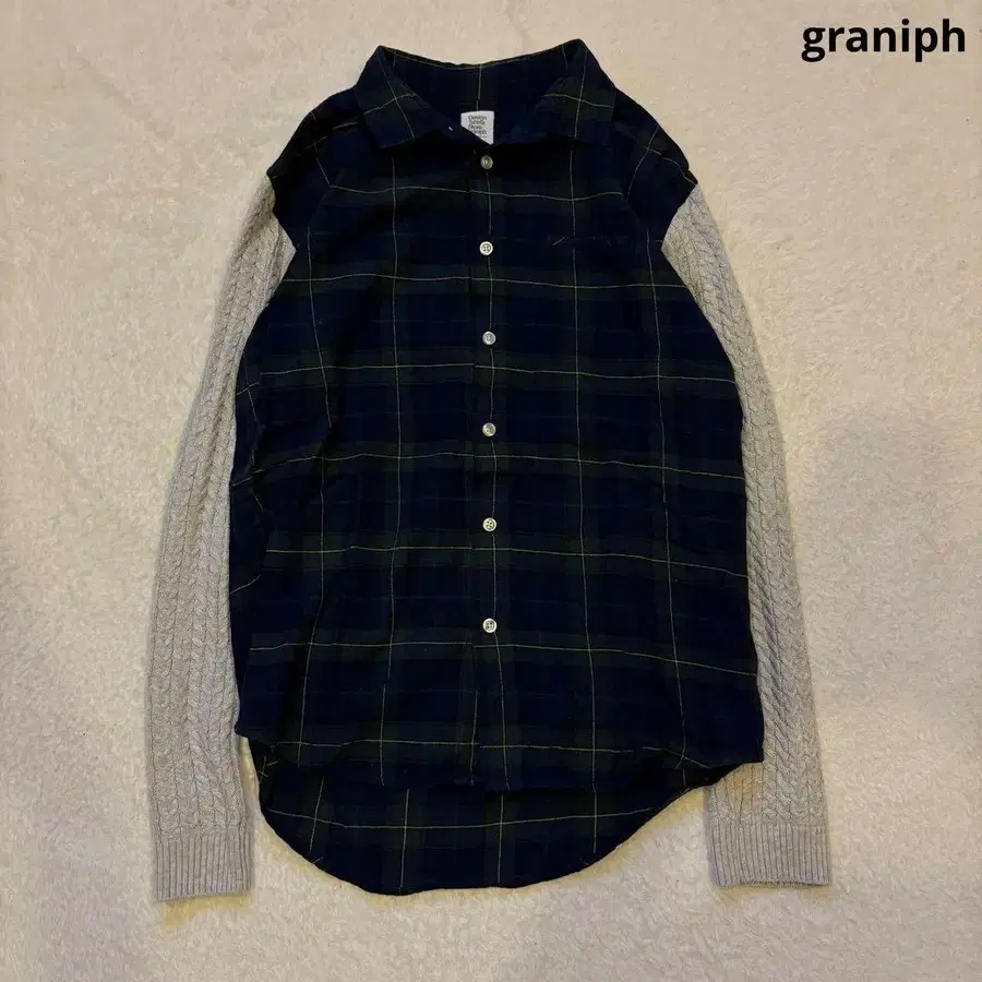 [ 새상품급 ] 그라니프 체크 셔츠 니트 도킹 루즈핏 그린 긴팔