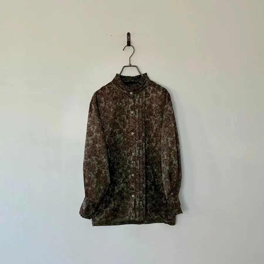 빈티지 올 패턴 셔츠 스탠드 카라 새틴 꽃무늬 앤티크풍 포멀