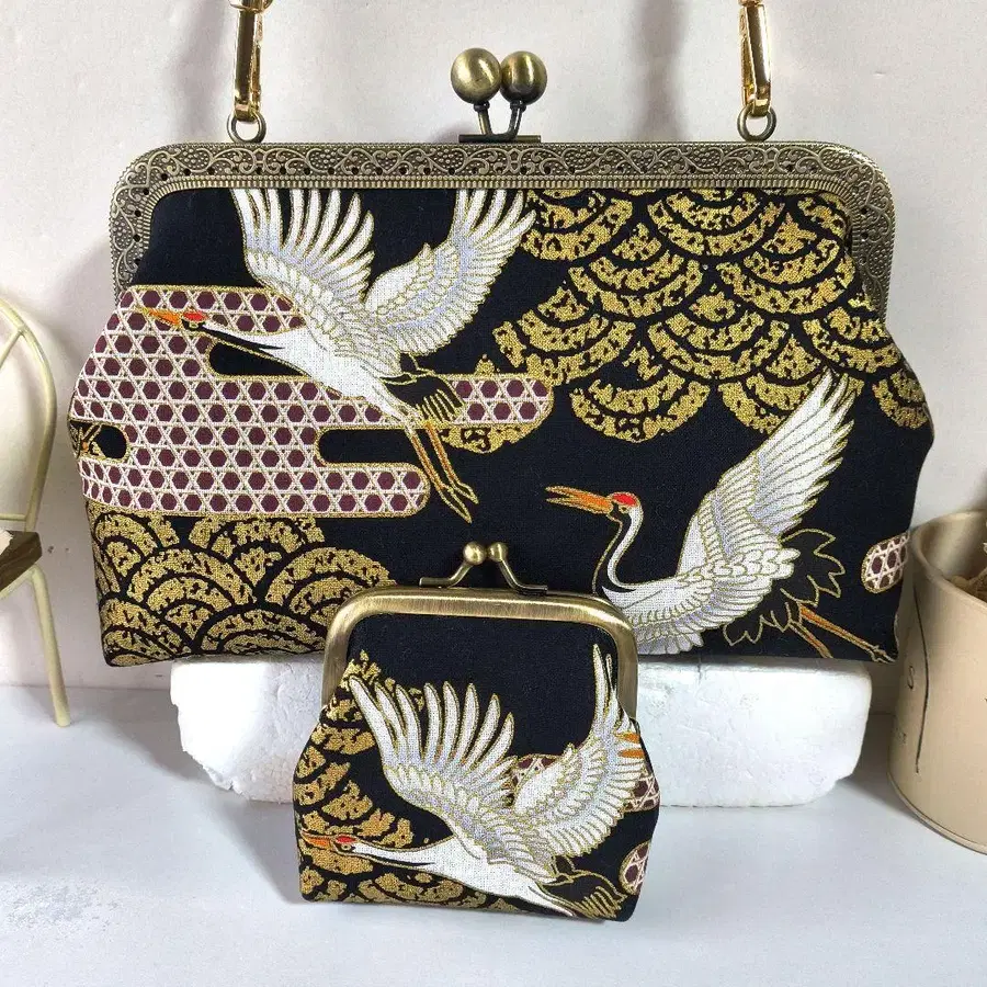일본풍 패턴 학 가마구치 파우치 장지갑 핸드메이드