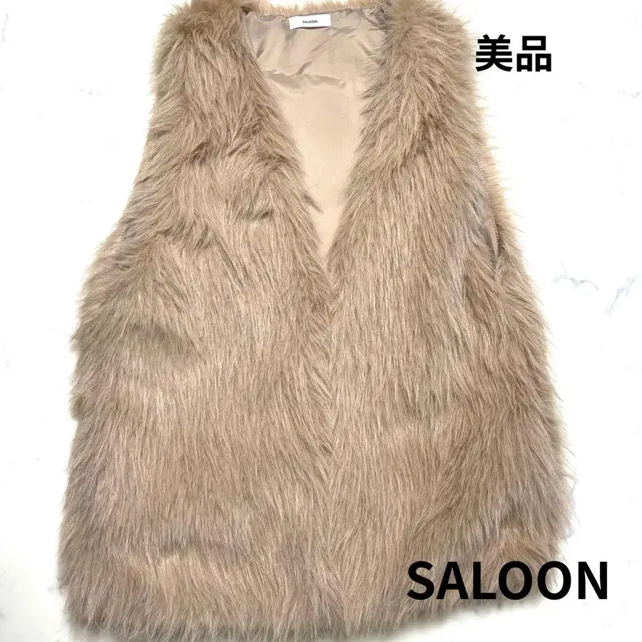 SALOON 핑크 베이지 인조 모피 베스트 새상품급