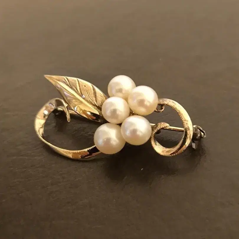 빈티지 스털링 실버 골드 컬러 펄 브로치 925