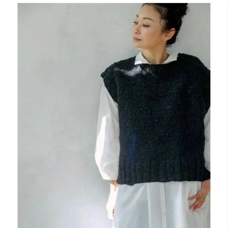 허그아워 콤비네이션 패턴 핸드 니트 베스트