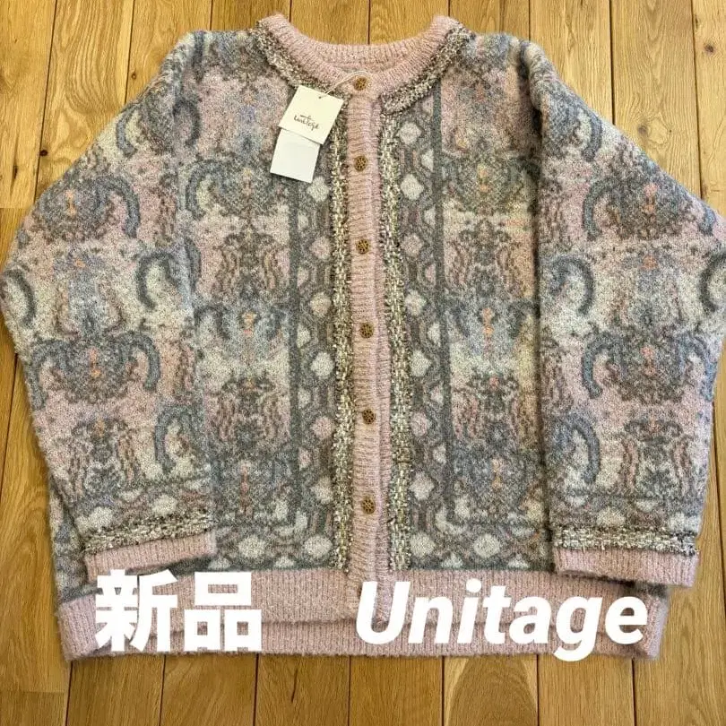 새상품 Unitage 유니티지 부클레 올 패턴 자카드 가디건