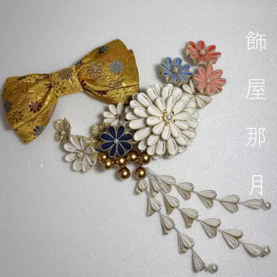[ 금란 리본 ] 츠마미자이쿠 머리 장식 세트