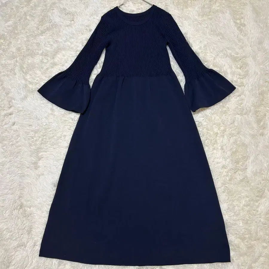 [새상품급] 고베 레터스 플레어 슬리브 롱 니트 원피스 네이비