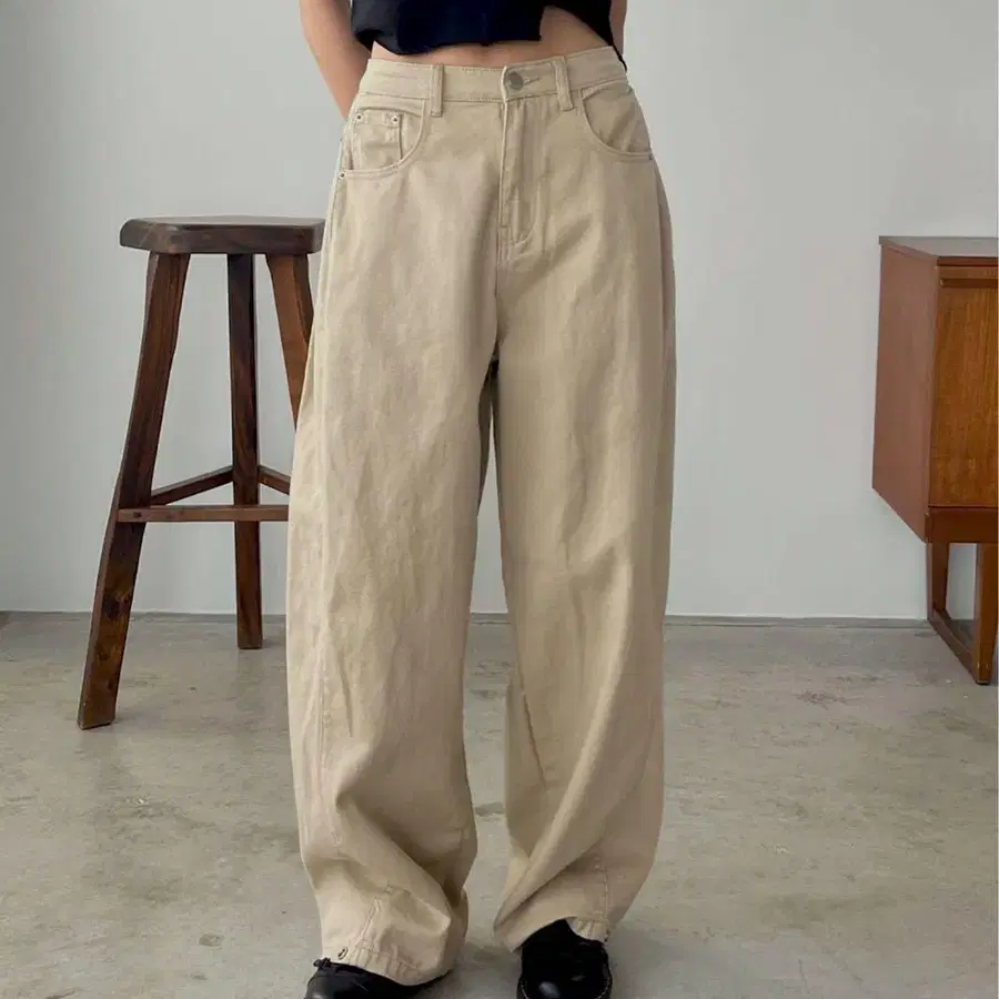 세미 스트레이트 와이드 치노 팬츠 베이지