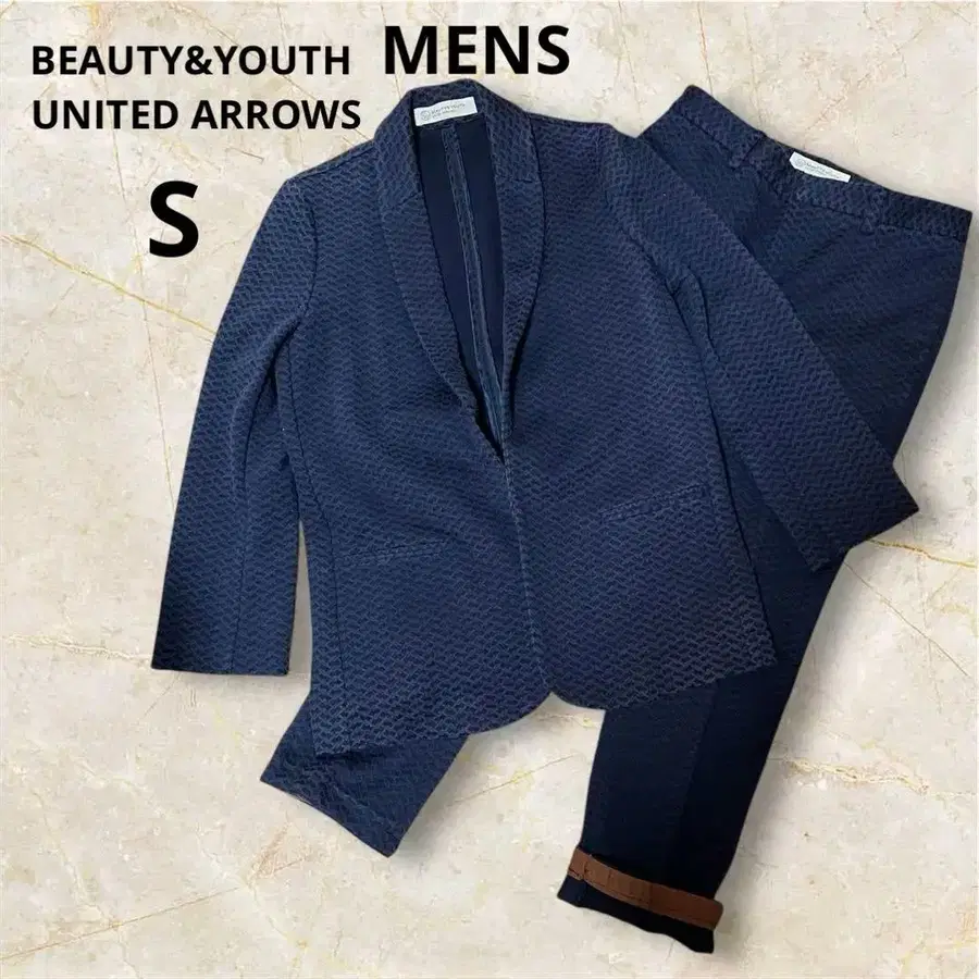 네이비 색상의 자켓 + 팬츠 셋업입니다.