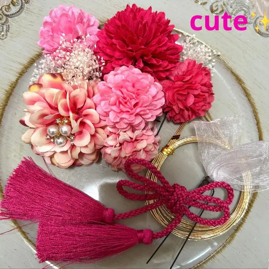 cute 성인식 졸업식 시치고산 사전 촬영 머리 장식
