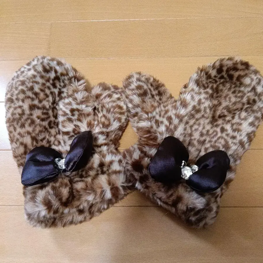 디즈니 미니 애니멀 무늬 레오파드 무늬 미튼 퍼 미튼 장갑 새상품급