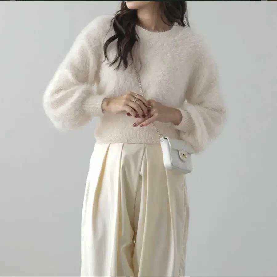 샤기 니트 크롭 상의