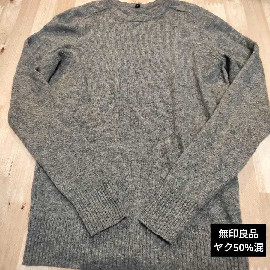 무인양품 그레이 크루넥 야크 50% 울 50% 니트 S
