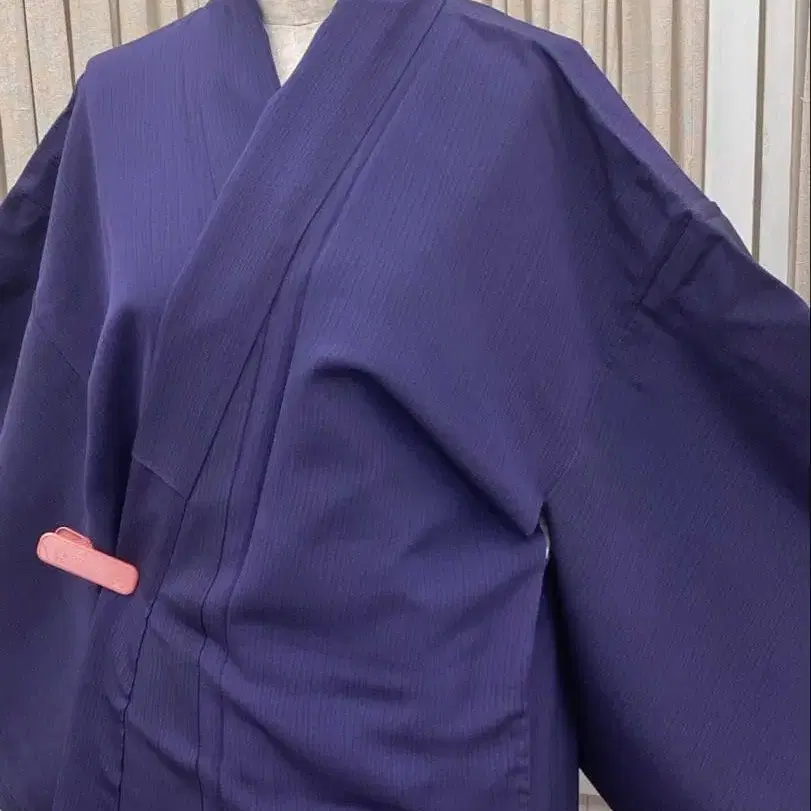 순수 실크 이중 기모노 무지 나뭇결 무늬 청보라색