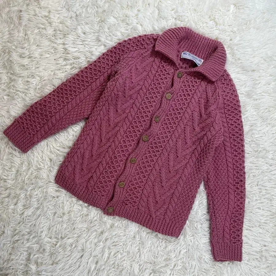 [ 영국제 ] 인버아란 가디건 핑크 S 스코틀랜드 아란 니트