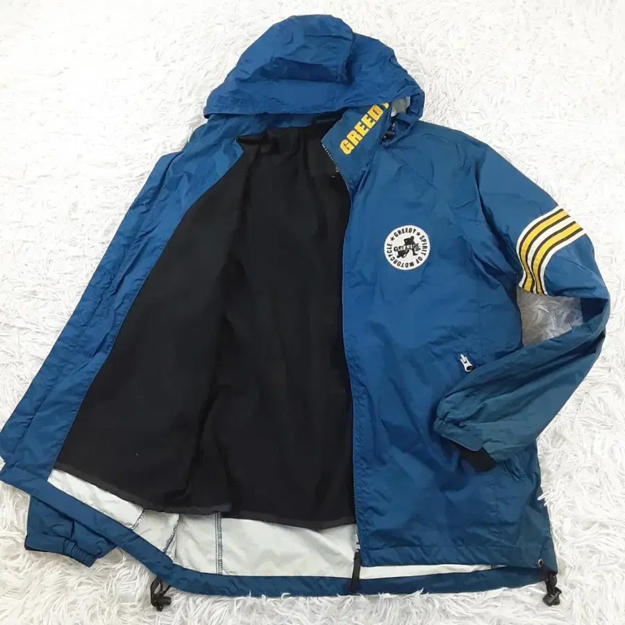 새상품급 ◎ GREEDY 그리디 나일론 자켓 네이비 곤 가슴 와펜 자수 후드 부착