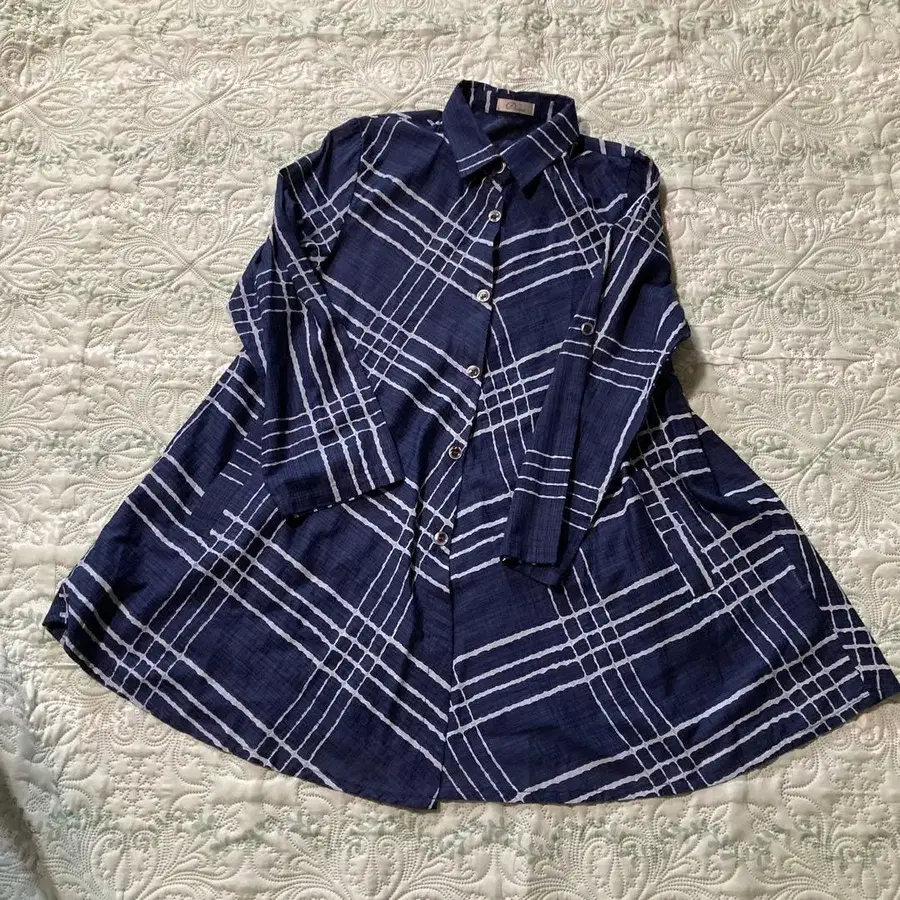 D orea 네이비 체크 무늬 긴팔 셔츠