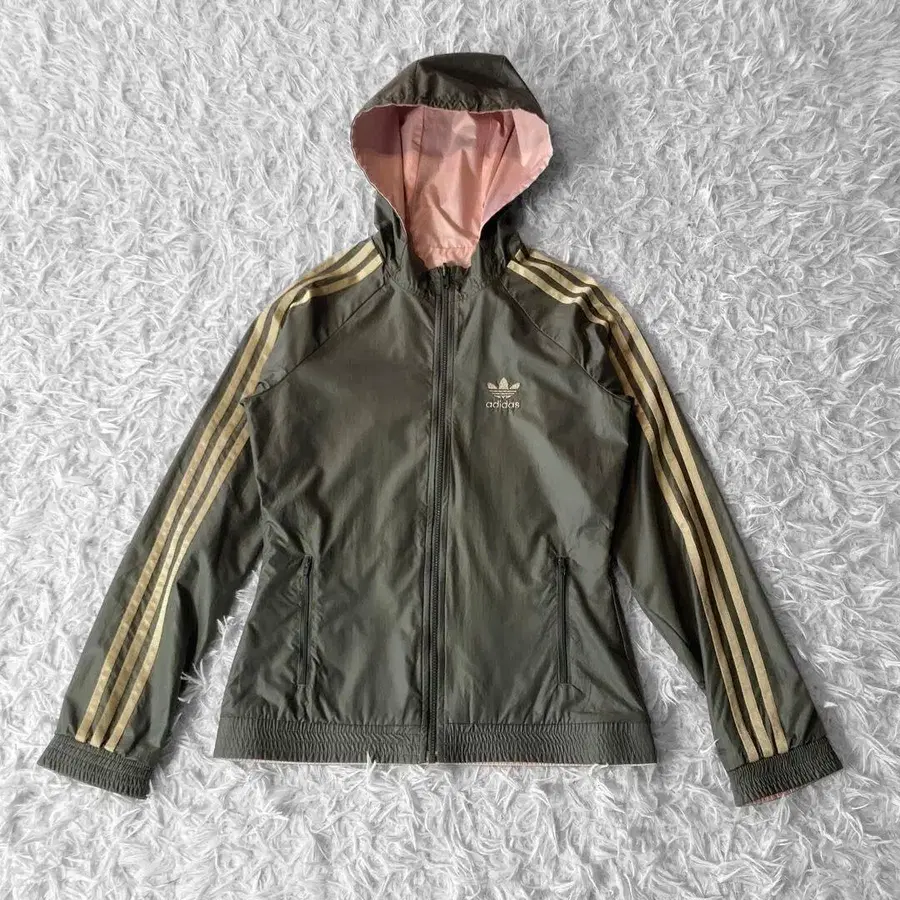 adidas 로고 자수 리버서블 자켓 S 후드 핑크 카키