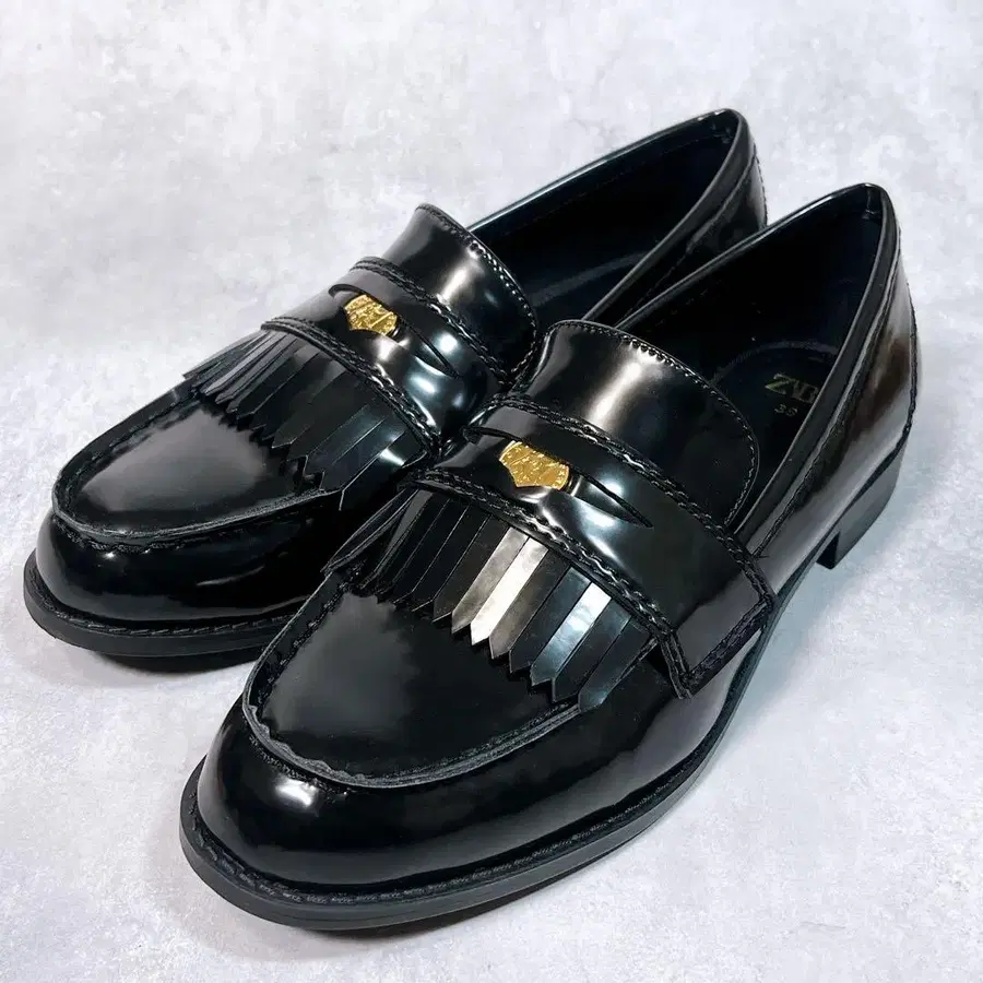 미사용급 [자라] 코인 로퍼 (38) 에나멜 프린지 블랙