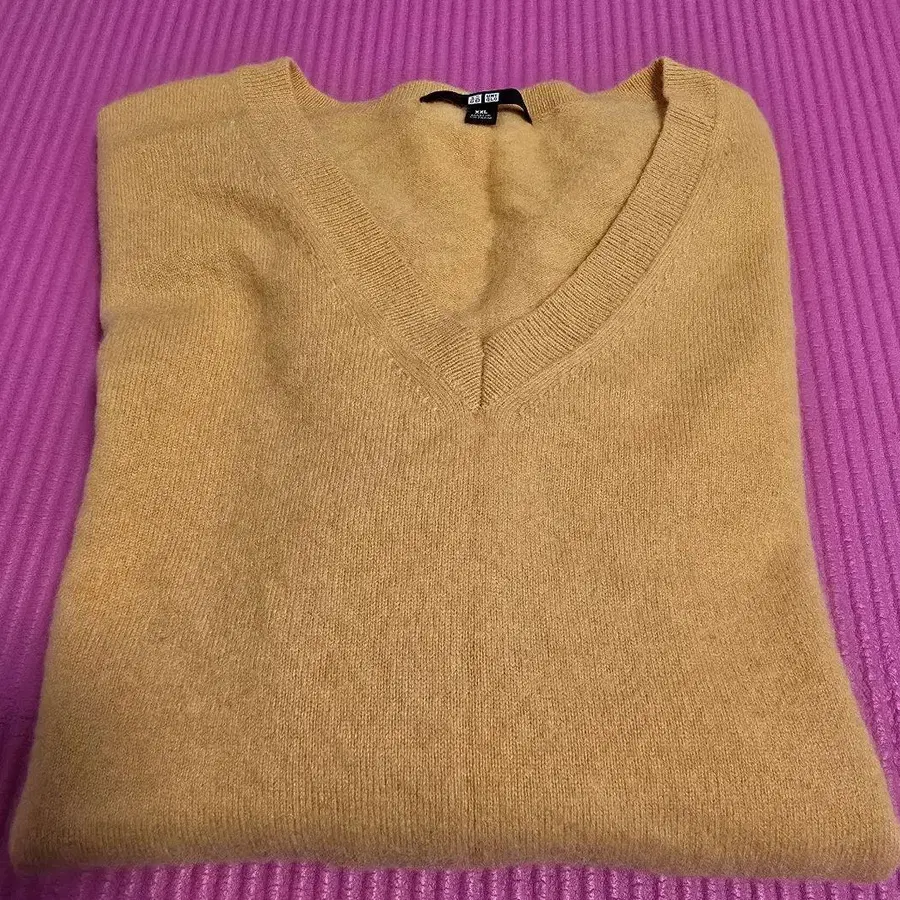 유니클로 캐시미어 V넥 스웨터 겨자색
