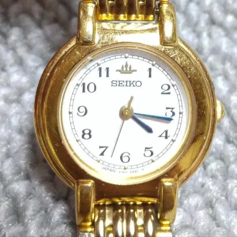 SEIKO 여성용 손목시계 쿼츠 골드 컬러 작동품입니다. 모델번호 V701-1781 케이스 사이즈 약 24mm 팔 둘레 약 165mm 벨트 정품입니다. 판매 시 배터리 교체 완료. 중고이므로, 미세한 스크래치는 보이지만, 전체적으로 깔끔한 새상품급이라고 생각합니다. 트러블 방지를 위해 판매 시 모든 과정을 증거 영상으로 촬영하고, 작동품이라고 기재된 것은 확실히 작동하는 것을 확인 후 발송합니다. 구매 시 안심 재료로 삼아주시면 감사하겠습니다. 무료배송, 유유 메루카리 택배로 발송 예정입니다. 가격 인하 불가. 협의 사절. 사진 접사 시 고배율로 인해, 육안으로 보이지 않는 얼룩이나 스크래치도 강조되어 있습니다. 예민하신 분이나 완벽을 추구하시는 분은 구매를 삼가해 주십시오. 개인 보관품임을 이해하신 후 구매해 주십시오. #손목시계 #남성용손목시계 #여성용손목시계 #SEIKO #세이코 #팔찌워치 #엘레강스 #액세서리 #앤티크 #빈티지 #매니아 #컬렉션 #워치 #레어 #초레어 #USQ 246
