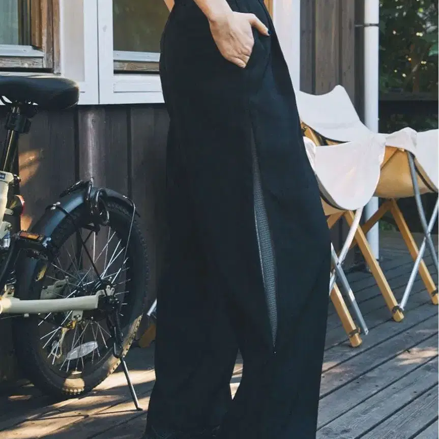 [ Unblend ] 사이드 배색 메쉬 절개 슬랙스