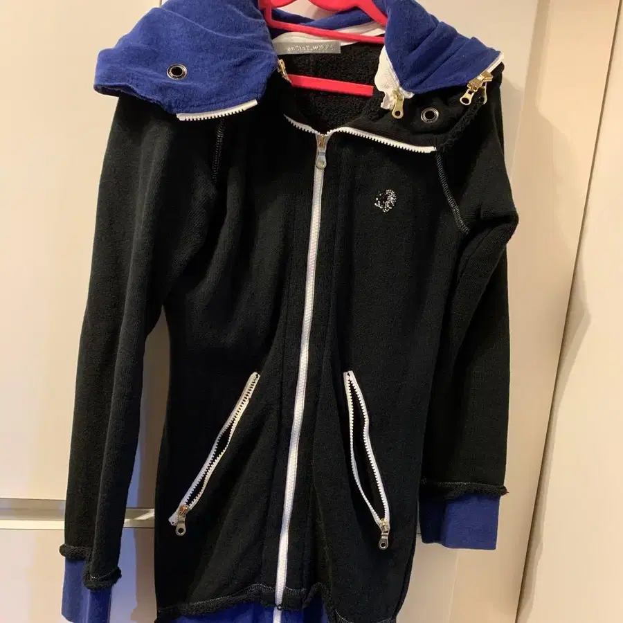 블랙과 파랑의 풀 집업 후드티