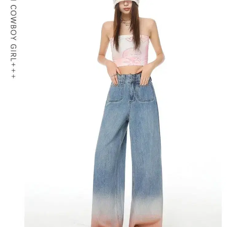 그라데이션 와이드 레그 데님 팬츠