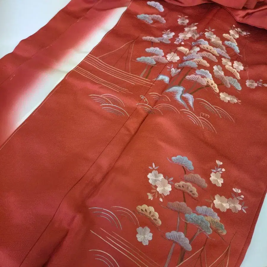 미사용 새상품 일본풍 빨간색 계열 기모노 벚꽃 자수 심플