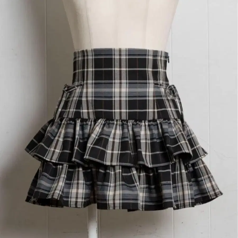 pium 사이드 리본 캉캉 스커트 브라운 체크