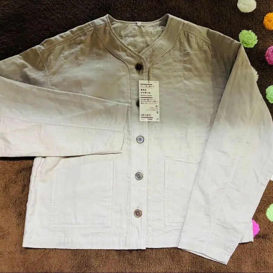새상품 무인양품 카폭 혼방 이중 거즈 퀼트 자켓 라이트 베이지