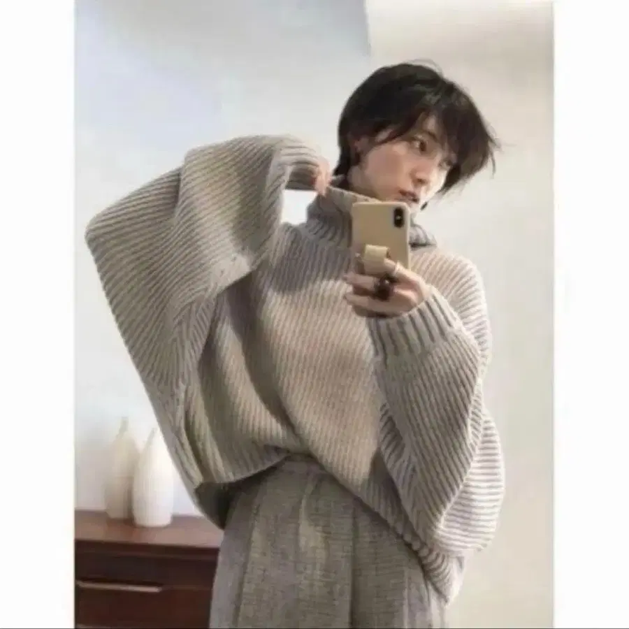 굵은 실로 큼직하게 짜인 볼륨감 있는 벌키 니트. 솟아오른 하이넥 부분과 풍성한 볼륨의 소매가 포인트. 하나만으로도 멋스러운 실루엣을 연출해 줍니다. 어떤 하의와도 잘 어울려 다양하게 활용 가능한 아이템입니다. 여유 있는 가슴 너비로 와이드 팬츠와 함께 입거나, 컴팩트한 하의로 깔끔하게 밸런스를 맞춰도 좋습니다.