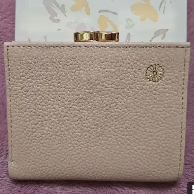 황궁 소가죽 가마구치 접이식 지갑 핑크 베이지
