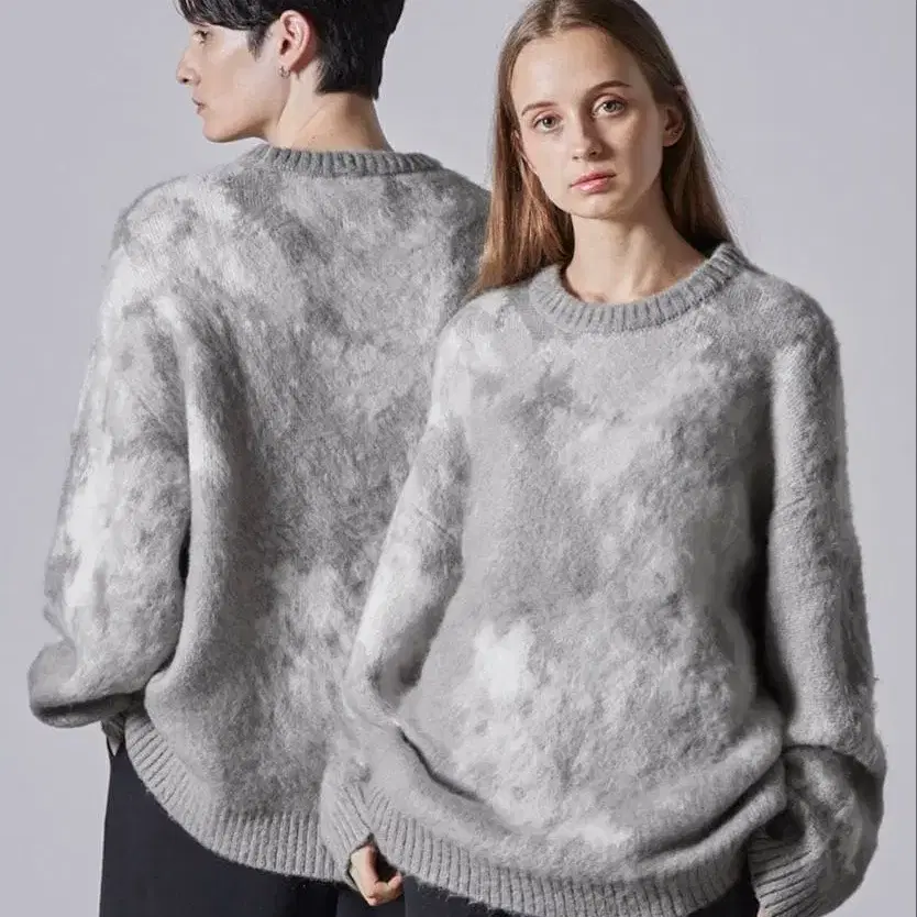 CLEL 모헤어 블렌드 샤기 디자인 니트 그레이 계열