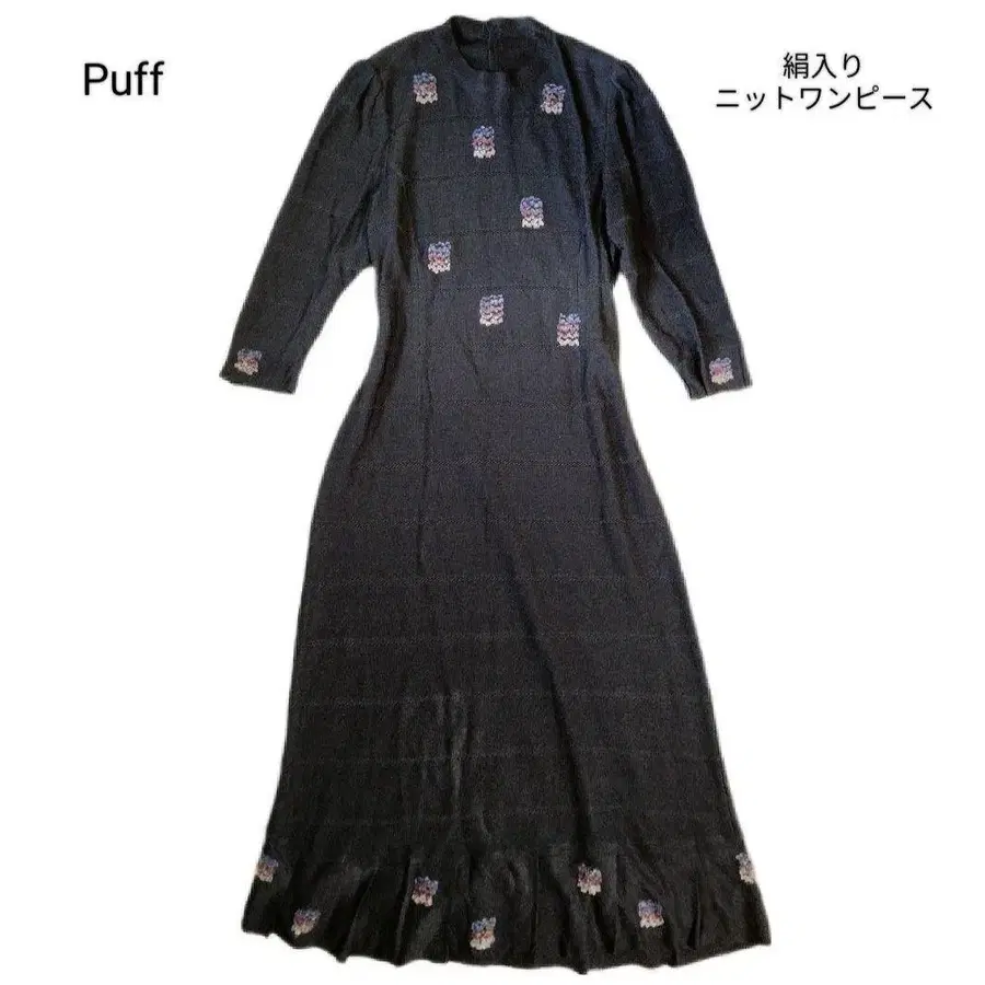 퍼프 실크 니트 롱 원피스 블랙 레트로