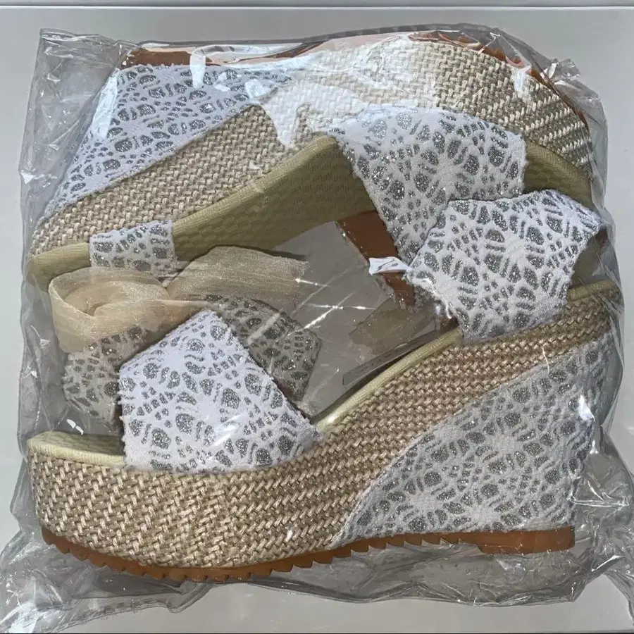 미개봉 새상품 택 포함 웨지 샌들 (화이트 & 라메 실버/베이지