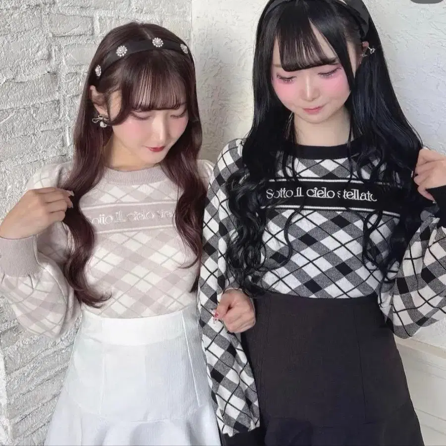evelyn 로고 체크 니트 핑크