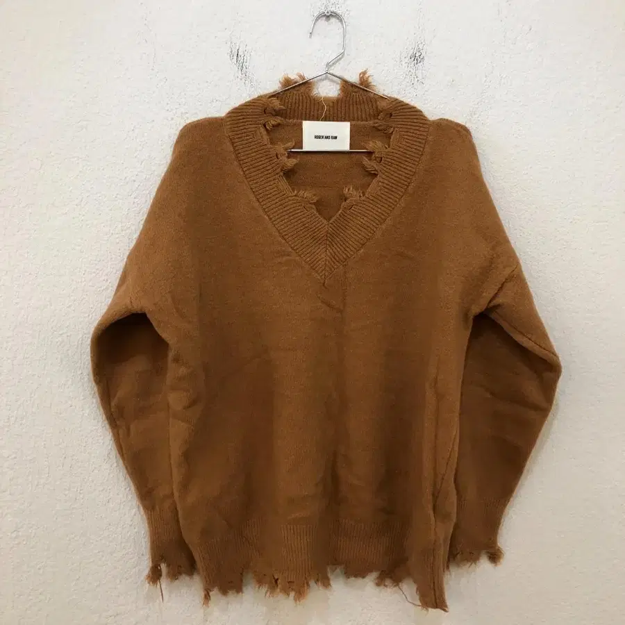 ROGER AND RAW 데미지 V넥 니트 풀오버