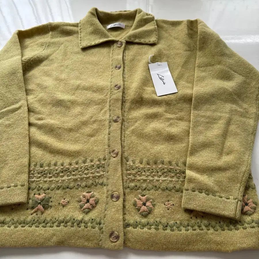 쇼와 레트로 모 100% 가디건 꽃 자수